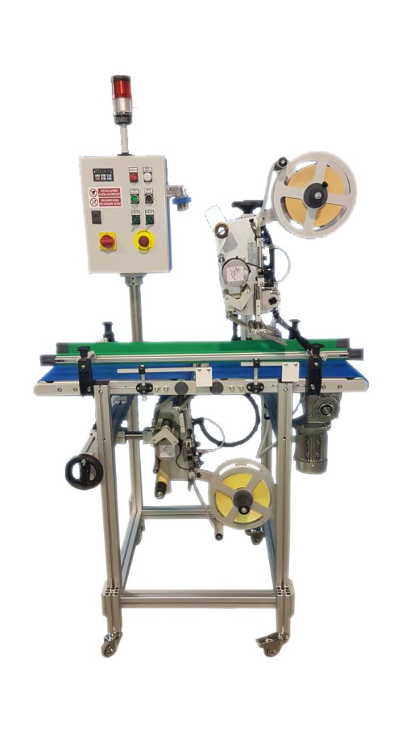 Nastri trasportatori con o senza pannellature, con un’etichettatrice o un sistema stampa/applica da sopra e da sotto